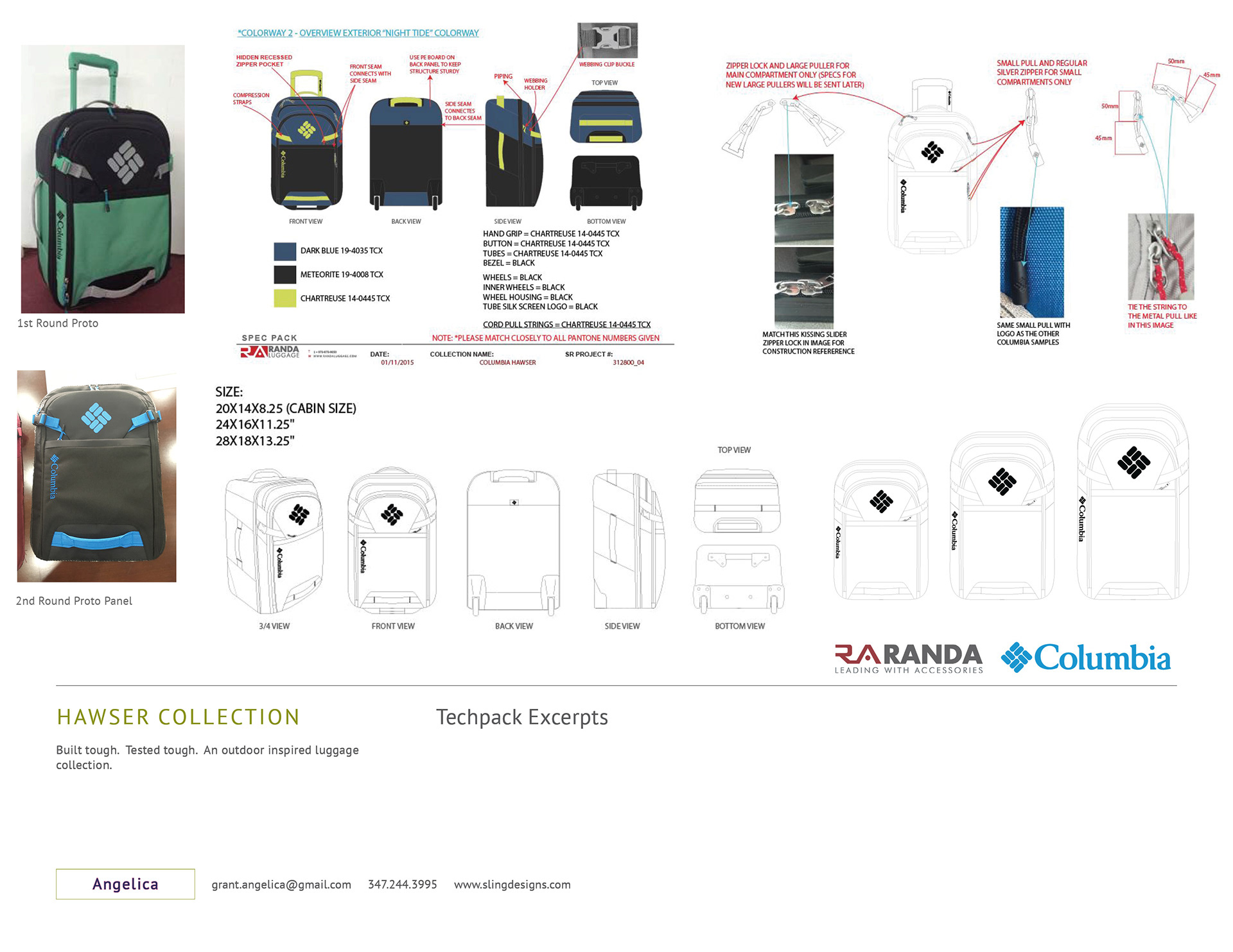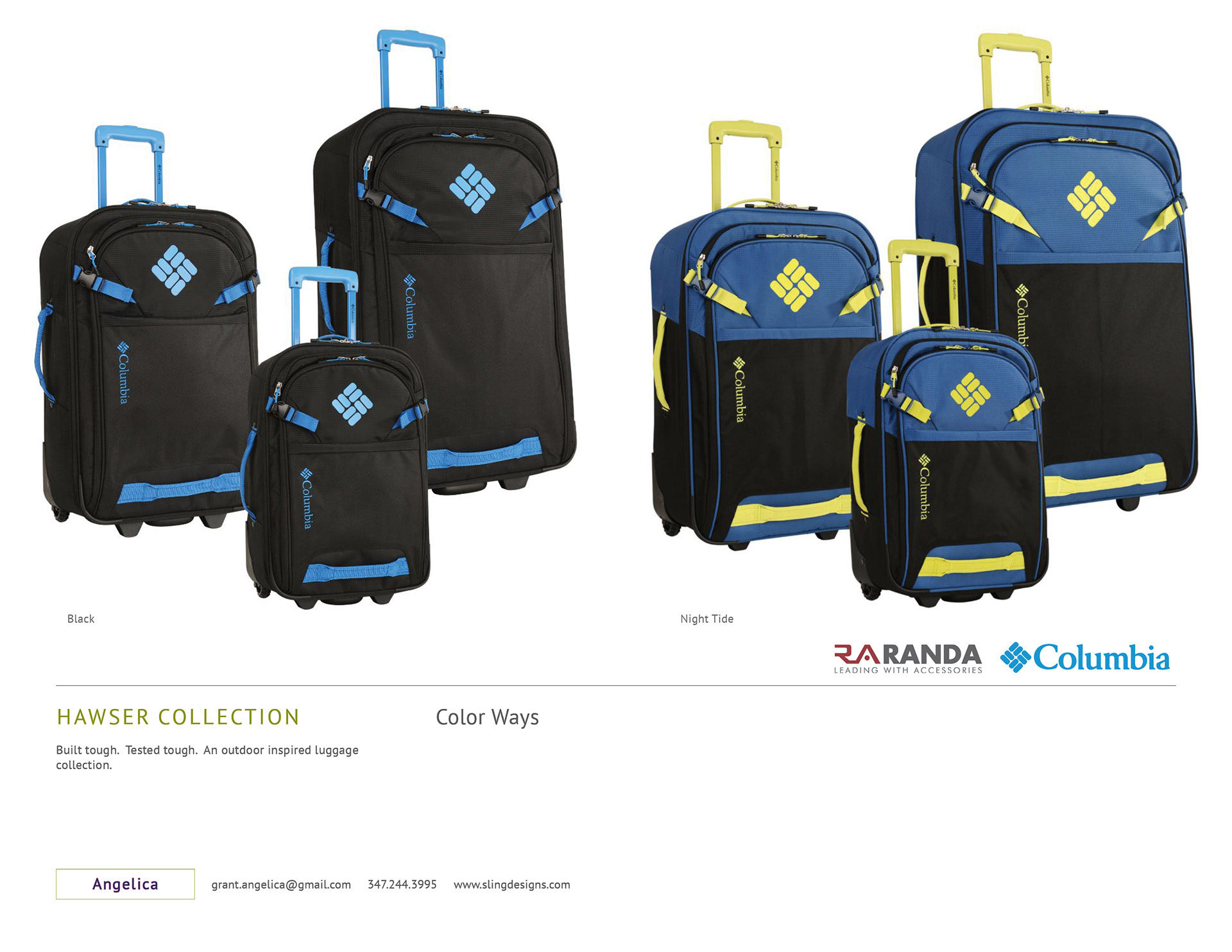 Designed and developed the Columbia Hawser luggage collection. Built tough and designed around function. This is a custom design with treaded in-line wheels.