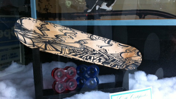 The theme of the board was to design a skate deck that uses the entire board as a canvas including both front and back sides. The entire completion of the deck took a total of 4 weeks. All of the designs were first thought out with a sketch plan.